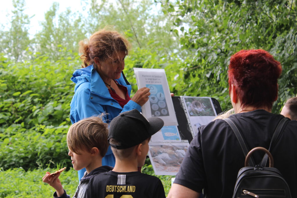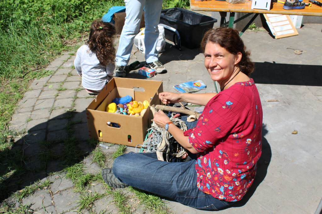 Recycling Action Day along the Rhine funded by Bündnis 90/Die Grünen Niederkassel in cooperation with biologist Dr. Inge Steinmetz and artist Anna Thinius